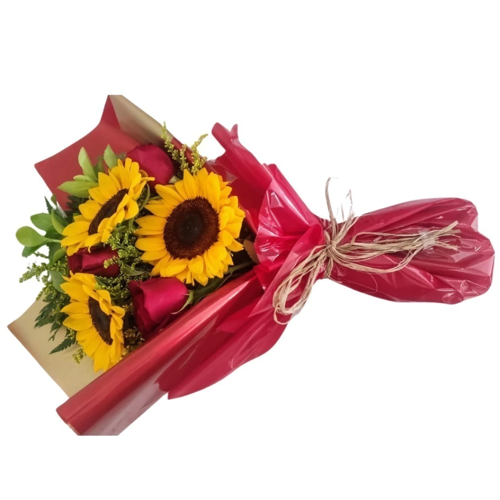 Surpreenda quem você ama com o nosso encantador ramalhete deitado com 3 rosas e 3 girassóis. Este arranjo é perfeito para expressar seus sentimentos de forma única e especial.